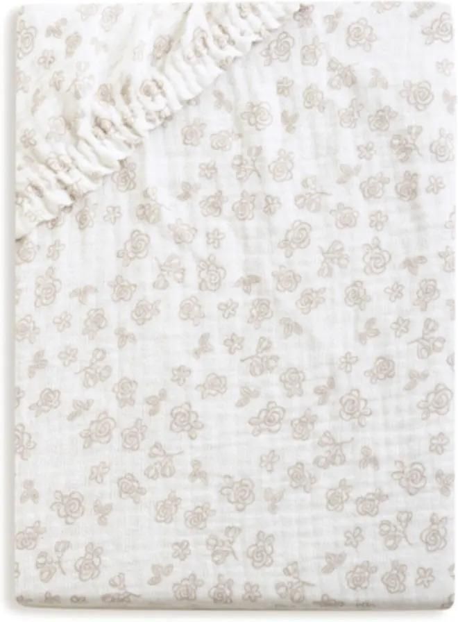 Produkt BabyMatex, prześcieradło muślinowe z gumką 60 cm x 120 cm, Muslin Design, białe w różyczki do kupienia w Gemini. Białe prześcieradło muślinowe z gumką BabyMatex Muslin Design w różyczki, o wymiarach 60 x 120 cm, to lek ...