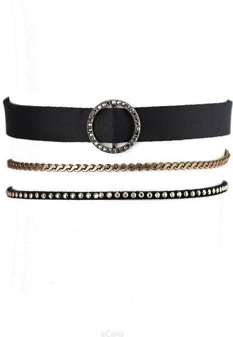 HIT SEZONU! Naszyjnik choker z ozdobami. Wykonany ze skóry ekologicznej, rzemyka i łańcuszka - bardzo wygodny w noszeniu. Klasyczne i proste wzornictwo naszyjnika idealnie podkreśli naturalne piękno i klasę kobiety.Świetnie pasuje do eleganckich, jak również do codziennych stylizacji. Naszyjnik prezentuje się rewelacyjnie!Naszyjnik wykonany jest ze stopów metali nieszlachetnych.Nie zawiera niklu ani chromu. Sprzedawany na eleganckich plakietkach. Wymiary:- długość ok. 31 cm + 5 cm regulacji