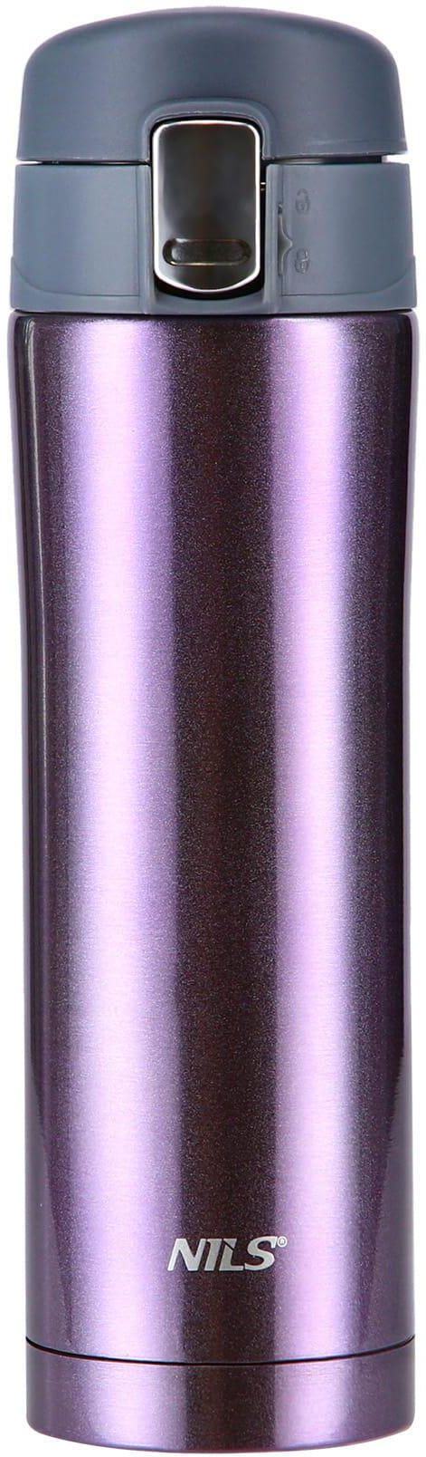 Kubek Termiczny Termos Dla Dziecka Do Szkoły Butelka Na Herbatę 430 ml NILS Najważniejsze cechy Podwójne ścianki ze stali nierdzewnej: skuteczna izolacja termiczna na kilka godzin. Szczelny system zamykania: zabezpieczenie przed przeciekaniem i przypadkowym otwarciem. Łatwe otwieranie jedną ręką: przycisk z blokadą zapewnia wygodę użytkowania. Kompaktowy kształt: idealny do plecaka, torby lub uchwytu samochodowego. Nowoczesny design: minimalistyczny wygląd, który łączy estetykę z funkcjonalnością. Dane techniczne Numer katalogowy: NCB10 Kolor: Fioletowy Pojemność: 500 ml Materiał: stal nierdzewna Cechy dodatkowe: Podwójne ścianki, blokada otwierania Waga: 260 g Czas utrzymania ciepła: do 12 h Czas utrzymania zimnej temperatury: do 24 h Wysokość: 24 cm Średnica u góry: 6,5 cm Zestaw zawiera: Nowy, oryginalny kubek termiczny marki NILS, nasz firmowy kalendarzyk NCB10 – szczelny kubek termiczny z blokadą NCB10 to praktyczny i stylowy kubek termiczny, idealny na każdą okazję – do pracy, szkoły czy na wycieczkę. Wykonany z trwałej stali nierdzewnej i wyposażony w podwójne ścianki, skutecznie utrzymuje temperaturę ciepłych napojów przez kilka godzin, a jednocześnie zapobiega nagrzewaniu się zewnętrznej powierzchni. Wyróżnia się nowoczesnym systemem otwierania z blokadą, który zapewnia pełną szczelność. Możesz bez obaw nosić go w plecaku czy torbie – zawartość pozostanie na swoim miejscu. Zwolnienie blokady i otwarcie wieczka to kwestia jednego ruchu – wystarczy przesunąć przycisk zabezpieczający w górę i nacisnąć przycisk otwierania, a pokrywka otworzy się automatycznie. FAQ – najczęściej zadawane pytania 1. Czy kubek NCB10 jest całkowicie szczelny? Tak, dzięki zastosowanemu systemowi blokady, kubek nie przecieka i nadaje się do noszenia w torbie lub plecaku. 2. Jak działa system otwierania? Aby otworzyć kubek, wystarczy przesunąć blokadę w górę i nacisnąć przycisk – pokrywka otworzy się automatycznie. 3. Jak długo kubek utrzymuje temperaturę? Kubek utrzymuje ciepło napojów przez kilka godzin dzięki podwójnej ściance ze stali nierdzewnej.