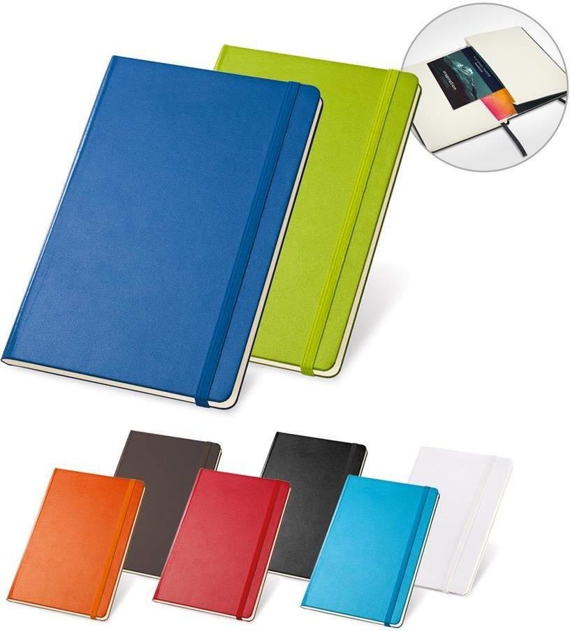 Notes A5 ze 160 stronami w kolorze kości słoniowej w linie. Posiada wewnętrzną kieszeń, twardą okładkę, zakładkę ze wstążki i gumkę.137 x 210 mm