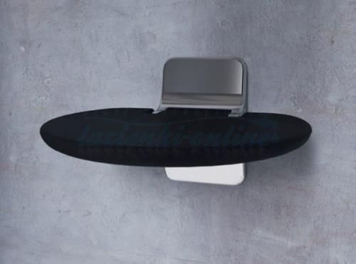 Novellini siedzisko prysznicowe składane, czarne SED01FM-H, max obciązenie 150 kg, montaż ścienny, rama wykonana z chromowanego metalu, siedziko z nietoksycznego, antybaktryjnego i wodoodpornego materiału. Rama kolor chrom, siedziko kolor czarny RAL7021.