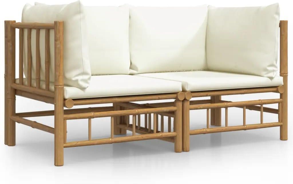 Ogrodowe Sofy Narożne 2 Szt. Kremowe Poduszki Bambus Gdynia