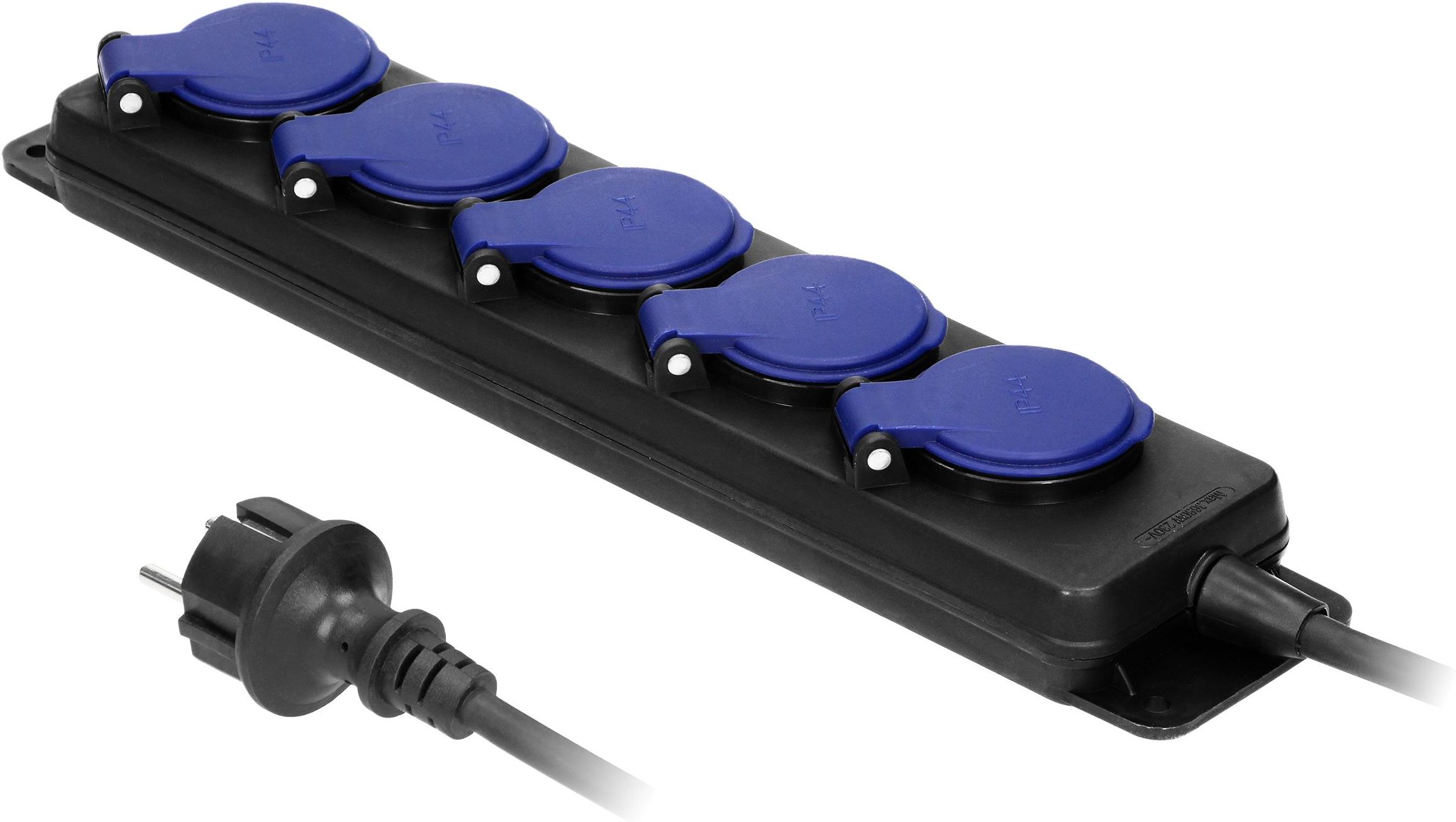 Przedłużacz warsztatowy, bryzgoszczelny z kablem w izolacji gumowej. Posiada 5 gniazd sieciowych z uziemieniem i przesłonami torów prądowych oraz pokrywami uszczelniającymi, które chronią przed zabrudzeniami i wilgocią. Zawieszka ułatwia montaż w bezpiecznym miejscu, a otwory służą do stałego montażu na stanowisku pracy. Długość kabla 3m. Informacje ogólne Typ: Przedłużacz Warsztatowy Napięcie zasilania: 230V~, 50Hz Max. obciążenie: 3680W Prąd: 16A Ilość gniazd sieciowych: 5 Typ gniazda: 2P+Z Standard gniazd: french (typ E) Przesłony torów prądowych: tak Ładowarka USB: nie Typ izolacji: guma Rodzaj przewodu: H05RR-F Ilość przewodów: 3 Przekrój żyły: 1,5 mm² Długość przewodu: 3m Stopień ochrony: IP44