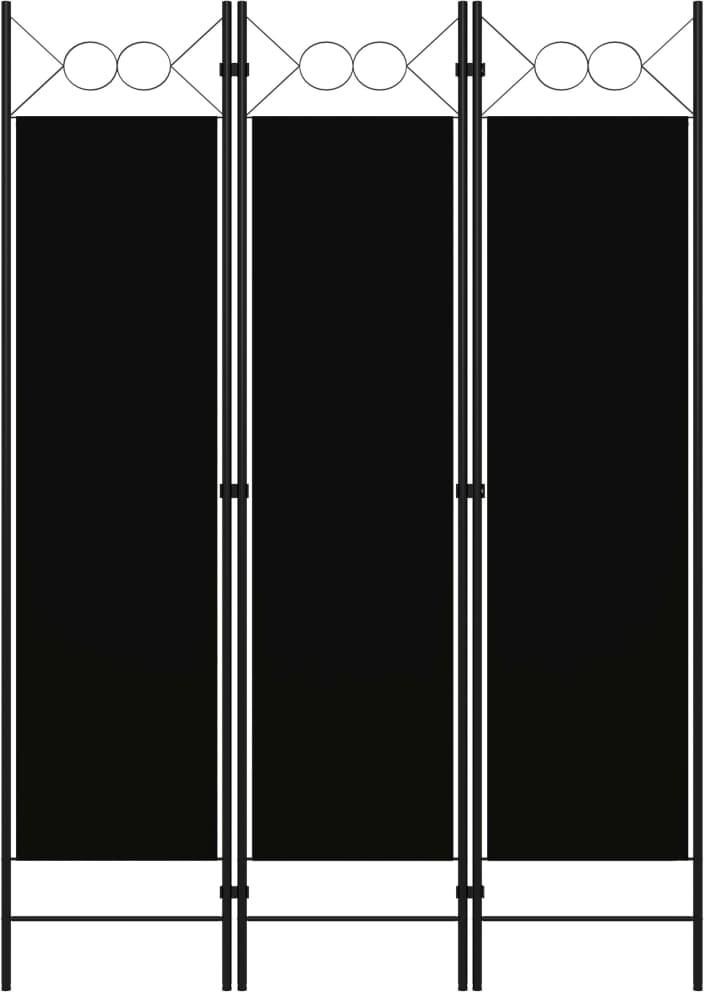 VidaXL Parawan 3-panelowy, czarny, 120 x 180 cm vidaXL Kolor: Array Rozmiar: Array Nasz wolnostojący, praktyczny, 3-panelowy parawan sprawdzi się jako przegroda, element wydzielający prywatną przestrzeń lub jako dekoracja. Gwarantuje on prywatność w sypialni lub wygrodzenie części pokoju. Górna część z okrągłymi elementami stanowi elegancki dodatek. Wykonany z malowanej proszkowo, żelaznej ramy i tkaniny parawan można bez trudu złożyć, gdy nie jest używany. Uwaga: tkanina nie blokuje światła całkowicie. Kolor: czarny Materiał: tkanina (100% poliester), malowane proszkowo żelazo Wymiary całkowite: 120 x 180 cm (szer. x wys.) Wymiary panelu z tkaniny (każdego): 36,5 x 135 cm (szer. x wys.) Z 3 panelami Górna część ozdobiona kółkami Wymagany montaż: tak