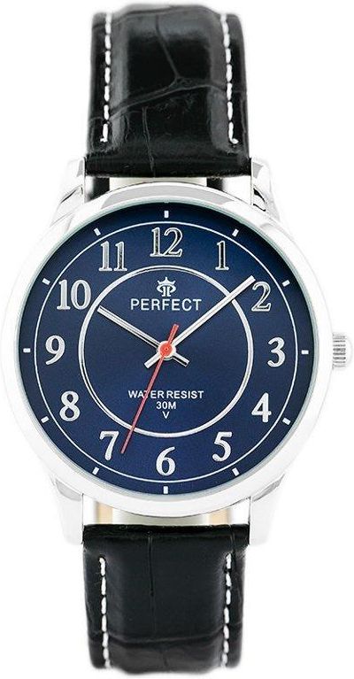 OPIS: Mechanizm kwarcowy: Made in Japan WYMIARY: koperta: 38 x 45 x 7,5mm tarcza: 34mm szerokość paska: 19/18mm maksymalny obwód: ok. 19,5cm KOLORYSTYKA tarcza: granatowa pasek: czarny z czarnymi przeszyciami koperta: srebrna