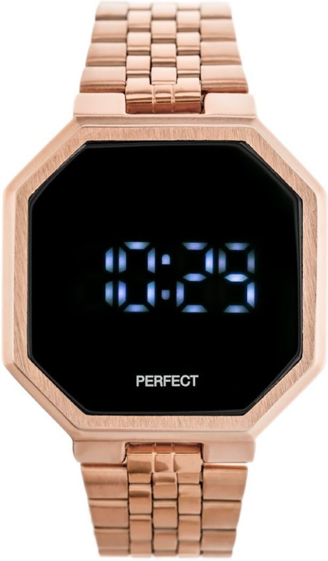 ZEGAREK LED PERFECT A8034 (zp917c) Różowe złoto Zegarki od dawna stanowią nie tylko narzędzie do mierzenia czasu, ale również stylowy dodatek, który może podkreślić indywidualny charakter jego właściciela. Wybierając idealny zegarek, warto zwrócić uwagę na różne aspekty, takie jak mechanizm, materiały, wodoszczelność oraz dodatkowe funkcje. W tym opisie przyjrzymy się bliżej zegarkowi ZEGAREK LED PERFECT A8034 (zp917c) Różowe złoto, który wyróżnia się zarówno eleganckim wyglądem, jak i praktycznymi rozwiązaniami. Mechanizm i typ zegarka Ten model zegarka to połączenie klasycznego stylu z nowoczesnymi rozwiązaniami. Mechanizm kwarcowy gwarantuje precyzyjne odmierzanie czasu, co jest kluczowe dla osób ceniących punktualność. Dzięki cyfrowemu wyświetlaczowi LED czas jest wyraźnie widoczny nawet w słabym oświetleniu. Mechanizm jest również w pełni odporny na działanie pola magnetycznego, co dodatkowo zwiększa jego niezawodność. Materiał koperty i szkiełko Koperta zegarka została wykonana z metalu, co zapewnia trwałość i odporność na uszkodzenia mechaniczne. Czarna kolorystyka koperty dodaje elegancji i sprawia, że zegarek pasuje do różnych stylizacji. Szkiełko zegarka to mineralne szkło, które charakteryzuje się dużą odpornością na zarysowania, co zapewnia długotrwałą przejrzystość tarczy. Bransoleta i wymiary Zegarek posiada solidną bransoletę wykonaną z stali nierdzewnej, co gwarantuje komfort noszenia oraz trwałość. Bransoleta ma kolor różowego złota, co jest obecnie bardzo modnym wyborem. Długość bransolety wynosi 190 mm, co pozwala na wygodne dopasowanie do nadgarstka. Zegarek ma wymiary: 40 mm szerokości koperty, 20 mm szerokości paska, a wysokość koperty to 8 mm. Te proporcje sprawiają, że zegarek wygląda elegancko i subtelnie na ręce. Wodoszczelność i funkcje dodatkowe Zegarek oferuje podstawową ochronę przed wilgocią, choć nie jest przeznaczony do głębokiego zanurzania w wodzie. Model ten posiada szereg funkcji dodatkowych, które zwiększają jego użyteczność: podświetlenie, datownik, który pokazuje dzień tygodnia i miesiąca, antyalergiczna powłoka IPS, która chroni przed reakcjami alergicznymi, wodoszczelność WR30, co oznacza odporność na przypadkowe zachlapanie wodą. nie zawiera niklu, co jest istotne dla osób uczulonych na ten metal. Styl i design Zegarek ZEGAREK LED PERFECT A8034 (zp917c) Różowe złoto wyróżnia się klasycznym stylem z nowoczesnym akcentem w postaci cyfrowego wyświetlacza LED. Prostokątna koperta oraz elegancka kolorystyka czarnej tarczy i różowego złota sprawiają, że zegarek ten będzie doskonałym uzupełnieniem zarówno codziennych, jak i bardziej formalnych stylizacji. Jego minimalistyczny design z pewnością przyciągnie wzrok i podkreśli indywidualny styl noszącej go osoby. Podsumowanie Zegarek ZEGAREK LED PERFECT A8034 (zp917c) Różowe złoto to doskonały wybór dla osób ceniących elegancję połączoną z nowoczesnymi rozwiązaniami technologicznymi. Dzięki precyzyjnemu mechanizmowi kwarcowemu oraz cyfrowemu wyświetlaczowi LED użytkownik zawsze będzie miał pewność dokładnego pomiaru czasu. Trwałe materiały oraz antyalergiczna powłoka IPS czynią go idealnym wyborem dla osób z delikatną skórą. Niezależnie od okazji, ten zegarek doda klasy każdej stylizacji.