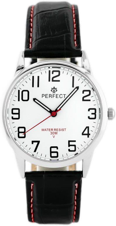 WYMIARY: koperta: 38 x 45 x 9mm średnica tarczy: 32,5mm szerokość paska: 20/18mm maksymalny obwód około 19,5cm KOLORYSTYKA: pasek w kolorze czarnym z czerwonymi przeszyciami tarcza w kolorze białym koperta w kolorze srebrnym cyfry w kolorze czarnym, czerwony sekundnik Mechanizm MIYOTA - made in Japan