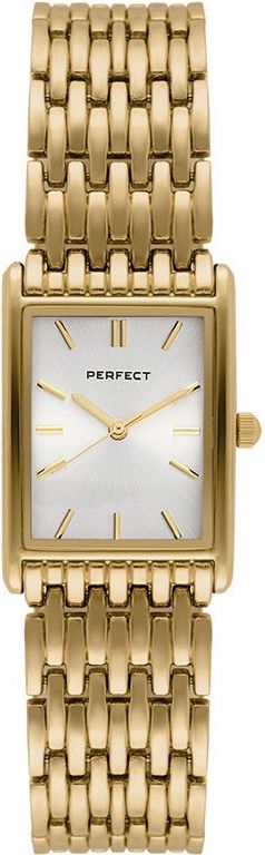 OPIS: Zegarki Perfect to czasomierze damskie, męskie oraz dziecięce, projektowane w Polsce od 1994r. Dzięki swojej tradycji jest to jedna z najbardziej rozpoznawalnych marek w naszym kraju. Kolekcje tego producenta cechują się różnorodnością stylu i zastosowania. W ofercie znajdują się zegarki klasyczne, sportowe oraz takie, które pasują praktycznie na każdą okazję i do każdej stylizacji. Większość cechuje niezawodny oraz bardzo dokładny mechanizm kwarcowy Miyota produkcji japońskiej oraz wysoka jakość wykonania co w połączeniu ze stosunkowo niską ceną czyni z produktów tej marki bardzo atrakcyjną propozycję. SPECYFIKACJA: Mechanizm: kwarcowy Made in Japan. Bransoleta i koperta: stal szlachetna Szkiełko: mineralne WYMIARY: szerokość koperty: 26 mm grubość koperty: 11 mm szerokość bransolety: 18 mm minimalny/maksymalny obwód: ok. 17 cm KOLORYSTYKA tarcza: srebrna indeks: złoty bransolety: złota koperta: złota W SKŁAD ZESTAWU WCHODZI Oryginalny zegarek Perfect Oryginalne pudełko Perfect Karta gwarancyjna