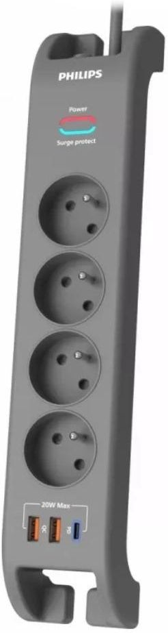 Listwa zasilająca Philips SPN4140GA/60 Listwa zasilająca Philips zapewnia niezawodną ochronę dla domowej i biurowej elektroniki dzięki zabezpieczeniu przeciwprzepięciowemu o energii 2400 J. Cztery gniazda sieciowe chronią podłączone urządzenia przed nagłymi skokami napięcia i zakłóceniami, zwiększając ich trwałość i bezpieczeństwo pracy. Wbudowany Power Blocker automatycznie odcina zasilanie po wykorzystaniu zdolności ochronnej, eliminując ryzyko dalszego użytkowania. Dodatkowo dioda LED informuje o prawidłowym działaniu systemu, a przesłony bezpieczeństwa skutecznie zabezpieczają gniazda przed dostępem dzieci i drobnych przedmiotów. Wydajne ładowanie i wygoda użytkowania Model wyposażono w 3 porty USB (1× USB-C i 2× USB-A), które umożliwiają wygodne ładowanie kilku urządzeń jednocześnie bez potrzeby korzystania z dodatkowych ładowarek. Obsługa standardów Power Delivery 20W oraz Quick Charge 18W pozwala na szybkie uzupełnianie energii w smartfonach i akcesoriach mobilnych. 2-metrowy przewód z systemem organizacji kabli ułatwia aranżację przestrzeni i utrzymanie porządku, a kompaktowa konstrukcja listwy sprawia, że doskonale sprawdzi się zarówno na biurku, jak i w strefie RTV. Specyfikacja Typ: Antyprzepięciowa Liczba gniazd: 4 szt. Liczba gniazd sieciowych z uziemieniem: 4 szt. Długość przewodu: 2 m Napięcie znamionowe: 230 V Poziom protekcji: 2400 J Kolor: Szary Dodatkowe informacje: Funkcja Power Blocker / 2 gniazda USB-A, moc: 18 W Quick Charge / 1 gniazdo USB-C, moc 20 W PD