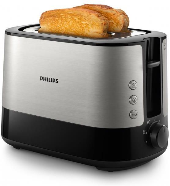 Toster Opiekacz Philips Viva Collection HD2635/90 Bardzo szeroka szczelina pasuje do grubych i cienkich, świeżych lub mrożonych plasterków.Mechanizm samocentrujący idealnie centruje każdy plasterek, zapewniając równomierne przyrumienienie, niezależnie od grubości. Wysoki podnośnik do bezpiecznego wyjmowania mniejszych kawałków Funkcja ta umożliwia bezpieczne podnoszenie mniejszych kawałków chleba Wbudowany stojak na bułki do podgrzewania bułek, ciastek i bułek Wbudowany stojak na bułki umożliwia łatwe podgrzewanie ciastek, bułek i bułek. Podgrzewaj i rozmrażaj za jednym razem Funkcje podgrzewania i rozmrażania umożliwiające opiekanie zamrożonego tostu/chleba za jednym razem Wyjmowana tacka na okruchy ułatwiająca czyszczenie Łatwe w czyszczeniu dzięki wyjmowanej tacce na okruszki. Dodatkowa ochrona przed automatycznym wyłączeniem Dodatkowa ochrona przed automatycznym wyłączeniem chroni produkt przed zwarciem. Możliwość regulacji 7 poziomów opiekania Dostosuj poziom grzania do swoich preferencji i przygotuj tosty tak, jak lubisz.