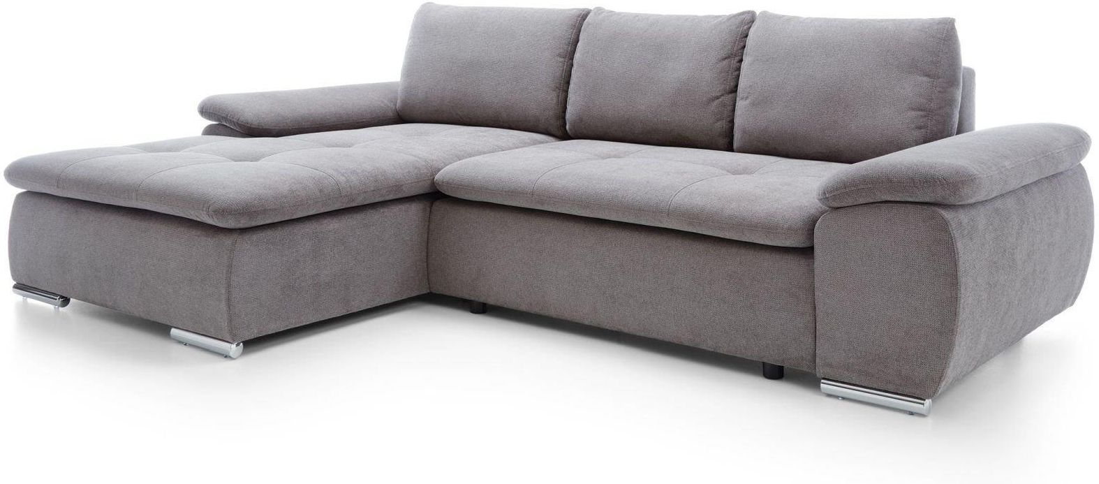 Narożnik Brevia Boss 18 Szary Lewy to elegancki i stylowy mebel wypoczynkowy, idealny do salonu lub sypialni. Jego wygodne siedzisko oparte na stelażu w kolorze chromu, zostało wykończone miękkim szarym welurem. Mebel wyposażony jest w praktyczny pojemnik na pościel oraz funkcję spania o szerokości 139 cm. Kształt kanapy w literę L pozwala na wygodne jej ustawienie i zmieszczenie maksymalnie trzech osób. Narożnik Brevia Boss 18 Szary Lewy charakteryzuje się nowoczesnym designem i jest funkcjonalnym oraz bardzo wygodnym miejscem relaksu.