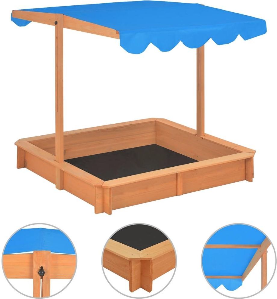 Kolor dachu: niebieski Materiał: drewno jodłowe, tkanina (100% poliester) Wymiary: 115 x 115 x 115 cm (dł. x szer. x wys.) Waga: 11,5 kg Regulowany dach z zabezpieczeniem UV50 Wymagany montaż: tak Produkt ten musi zostać zmontowany przez osobę dorosłą OSTRZEŻENIE: Nieodpowiednie dla dzieci poniżej 36 miesięcy. OSTRZEŻENIE: Do użytku pod bezpośrednim nadzorem osoby dorosłej. Ta drewniana piaskownica z daszkiem sprawi radość Twoim ukochanym maluchom! Ten domek do zabawy jest wykonany z drewna jodłowego, dzięki czemu jest trwały i nadaje się do użytku na zewnątrz. Drewniana piaskownica posiada zadaszenie, które chroni dzieci przed szkodliwym promieniowaniem UV. Dodatkowo dach ma regulowaną wysokość. Piaskownica zachęca dzieci do zabawy na świeżym powietrzu, jednocześnie rozwijając ich zdolności twórcze. Kolor dachu: niebieski Materiał: drewno jodłowe, tkanina (100% poliester) Wymiary: 115 x 115 x 115 cm (dł. x szer. x wys.) Waga: 11,5 kg Regulowany dach z zabezpieczeniem UV50 Wymagany montaż: tak Produkt ten musi zostać zmontowany przez osobę dorosłą OSTRZEŻENIE: Nieodpowiednie dla dzieci poniżej 36 miesięcy. OSTRZEŻENIE: Do użytku pod bezpośrednim nadzorem osoby dorosłej.