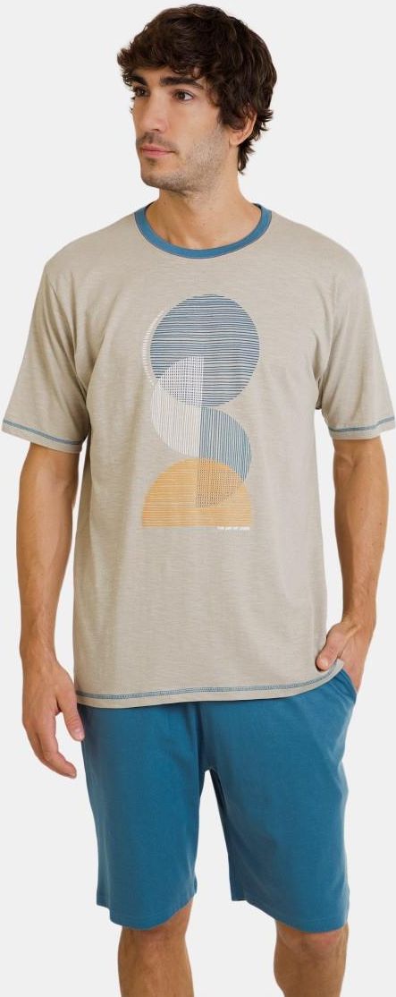 Dwuczęściowa piżama dla mężczyzn w przyjemnej kolorystyce. Oliwkowa koszulka z okrągłym dekoltem posiada ciekawy wzór. Spodenki z kieszonkami bocznymi i wiązaniem w pasie maja kolor niebieski. Piżama pochodzi z produkcji Massana - hiszpańskiej marki, która od lat cieszy się uznaniem odbiorców w …