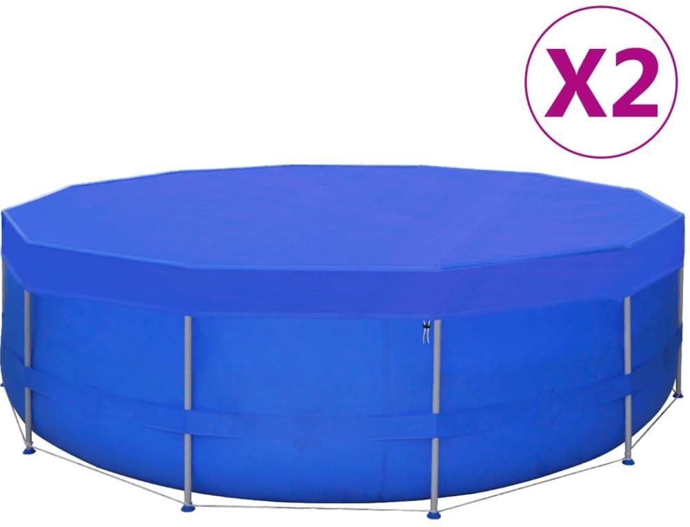 Plandeki na basen, 2 szt., PE, okrągłe, 460 cm, 90 g/m² vidaXL Kolor: Array Rozmiar: Array Średnica: Array Zestaw plandek na basen jest przeznaczona do przykrycia okrągłych basenów naziemnych. Pomoże utrzymać wodę w czystości, bez owadów i innych zabrudzeń w czasie, gdy basen nie jest używany. Wykonana z polietylenu plandeka zrobiona została z materiału o gęstości 90 g/m², co czyni ją odporną na pęknięcia i rozdarcia oraz na działanie wody. Dzięki niewielkim otworom drenażowym woda będzie spływać zamiast gromadzić się pośrodku, a także zapewni wentylację. Wysokiej jakości szwy na krawędziach gwarantują lata użytkowania. Plandekę można zamocować do basenu poprzez zaciągnięcie sznurka. Obsługa jej jest niezwykle prosta! Kolor: ciemnoniebieski Materiał: PE (polietylen) Średnica: 460 cm Gramatura: 90 g/m² Z plastikową blokadą mocowania sznurka Odpowiednia do okrągłych basenów o średnicy do 420 cm Z niewielkimi otworami drenażowymi, które zapobiegną gromadzeniu się wody na powierzchni Zawartość przesyłki: 2 x plandeka basenowa