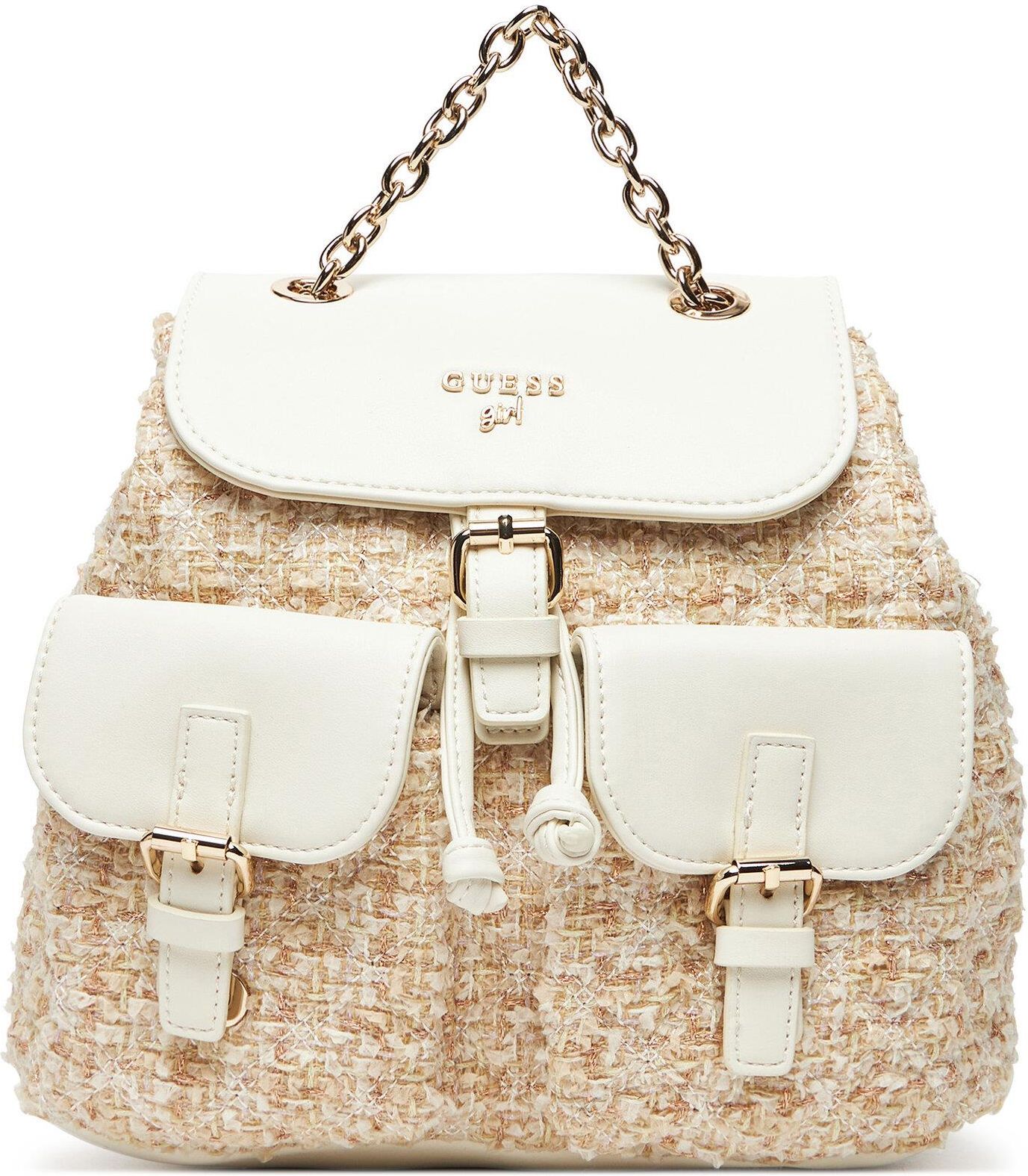 Stylowy plecak Guess to idealny dodatek dla młodych miłośniczek mody! Wykonany z imitacji skóry, wyróżnia się eleganckim wyglądem i trwałością, dzięki twardej konstrukcji. Jego kompaktowy, mały rozmiar sprawia, że jest perfekcyjny na codzienne wyjścia, oferując wystarczającą przestrzeń na najważniejsze drobiazgi. Ten plecak to doskonałe połączenie funkcjonalności i modnego designu, który z pewnością przypadnie do gustu każdej dziewczynce ceniącej wyjątkowe dodatki.