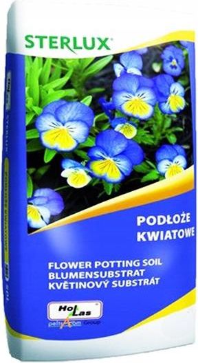 PODŁOŻE KWIATOWE STERLUX 10L Podłoże przeznaczone do amatorskiej uprawy kwiatów o średnich wymaganiach pokarmowych, zarówno w mieszkaniach lub pod osłonami, jak i na zewnątrz, np. balkony oraz rabaty kwiatowe. Uprawę można prowadzić w różnego rodzaju pojemnikach jak i w gruncie. SKŁAD I WŁAŚCIWOŚCI Podłoże przygotowano na bazie wysokiego torfu frezerowego, odkwaszonego kredą. Zawiera dawkę startową nawozu wieloskładnikowego. pH: 5,5 - 6,5 zasolenie: nie więcej niż 1,9g NaCl/dm3 nawóz wieloskładnikowy NPK+Mg (16-16-18)+(5):0,8kg/m3