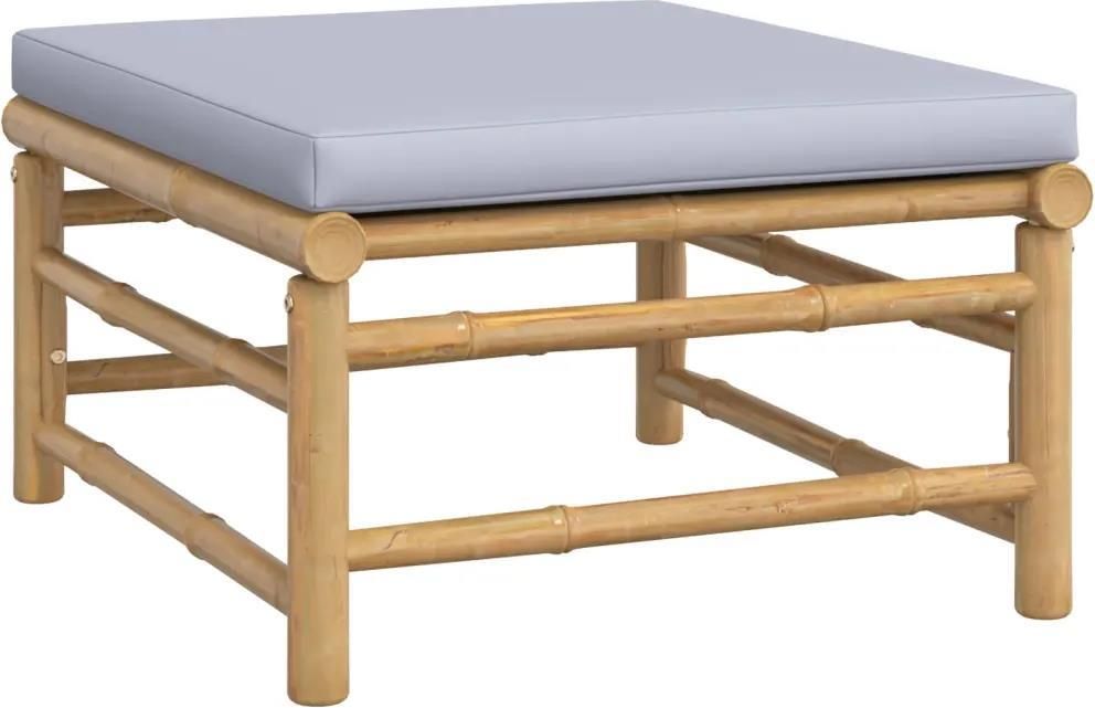 Podnóżek Ogrodowy Z Jasnoszarymi Poduszkami Bambusowy Gdynia