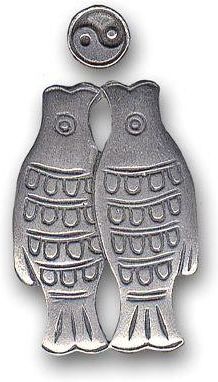 Amulet na zdrowie i szczęście.Ryba ma wyjątkową symbolikę. Podwójne ryby reprezentują bogactwo, harmonię, szczęście i radość z połączenia fizycznego. Chronią również przed chorobami i złymi intencjami Wisior wykonany jest z cyny, zawieszony jest na czarnym sznurku.
