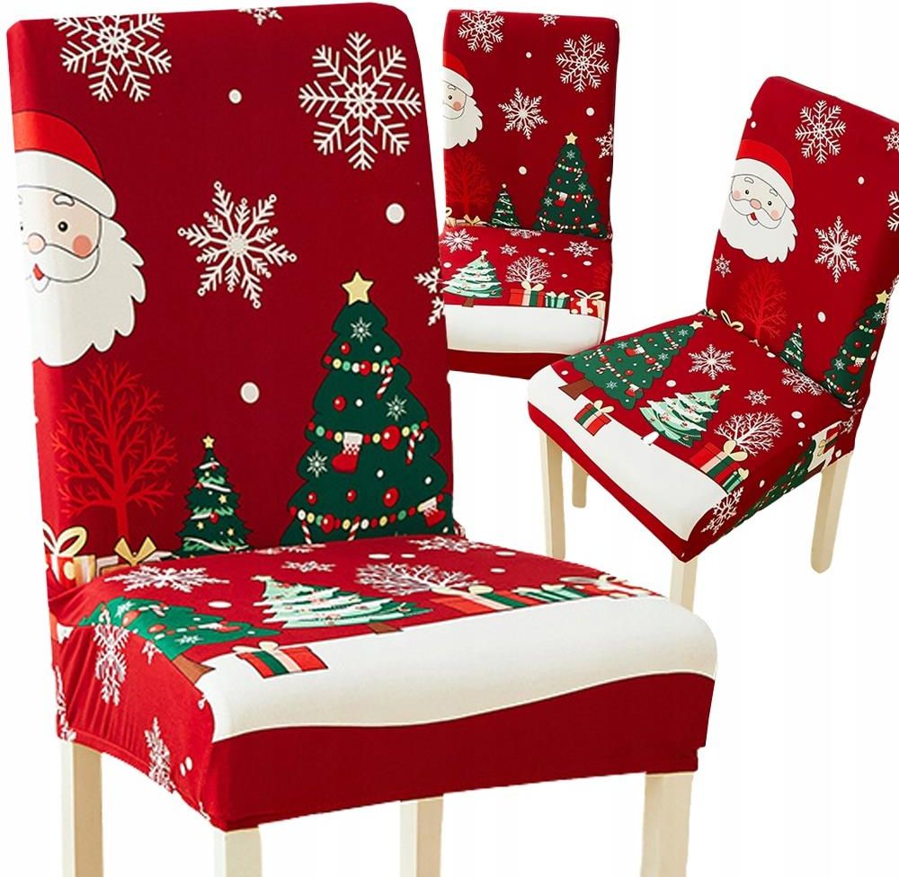 POKROWIEC ŚWIĄTECZNY NA KRZESŁO DEKORACYJNY UNIWERSALNY MIKOŁAJ NA GUMKĘ Gdynia