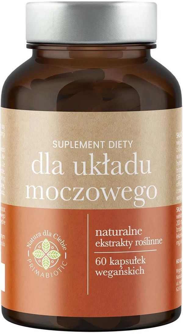 PRIMABIOTIC DLA UKŁADU MOCZOWEGO - KAPSUŁKI 60 sztuk Sięgnij po naturalne wsparcie dla Twojego organizmu w wygodnej formie kapsułek. Wsparcie nerek i pęcherza: żurawina wielkoowocowa wspiera zdrowie dróg moczowych. Skuteczność potwierdzona – wysoka przyswajalność i odpowiednio dobrane dawki zapewniają realne wsparcie organizmu. Bez zbędnych dodatków – formuła wolna od sztucznych barwników, konserwantów i wypełniaczy. Eliminacja nadmiaru wody: pokrzywa i brzoza wspomagają funkcję wydalniczą nerek. Utrzymanie prawidłowego przepływu moczu: dzięki ekstraktowi z mniszka lekarskiego. Kompleksowe wsparcie zdrowia dróg moczowych w naturalnej i wygodnej formie kapsułek. Dzięki synergii działania żurawiny, pokrzywy, brzozy i mniszka, suplement wspomaga funkcje wydalnicze nerek, oczyszcza organizm i ułatwia eliminację toksyn. To naturalna alternatywa dla osób z nawracającymi problemami układu moczowego, z myślą o zdrowiu i harmonii całego organizmu! W czym pomaga suplement? Wsparcie nerek i pęcherza: żurawina wielkoowocowa wspiera zdrowie dróg moczowych. Eliminacja nadmiaru wody: pokrzywa i brzoza wspomagają funkcję wydalniczą nerek. Utrzymanie prawidłowego przepływu moczu: dzięki ekstraktowi z mniszka lekarskiego. Lepsze wchłanianie: pieprz czarny (BioPerine®) zwiększa przyswajalność substancji roślinnych. Dlaczego Dla układu moczowego od Primabiotic? Bezpieczeństwo i jakość - produkty Primabiotic produkowane są zgodnie z rygorystycznymi standardami, co gwarantuje najwyższą jakość i bezpieczeństwo, potwierdzone badaniami Hamilton. Praktyczne opakowanie – zmieścisz je w każdej torebce, a kapsułki wystarczą na miesiąc regularnej suplementacji. Czysta formuła - naturalny skład, bez sztucznych aromatów, barwników i konserwantów. Najczęściej zadawane pytania (FAQ) Na ile wystarcza jedno opakowanie? Jedno opakowanie zawiera 60 kapsułek – wystarcza na około miesiąc suplementacji. Czy produkt jest naturalny i bezpieczny? Zawiera tylko niezbędne składniki – bez konserwantów, sztucznych aromatów i barwników. Czy mogę łączyć ten produkt z innymi suplementami? Najlepiej skonsultuj to z lekarzem lub dietetykiem, zwłaszcza przy suplementacji dużych porcji. Jak spożywać? ZALECANE DZIENNE SPOŻYCIE: 1 kapsułka dwa razy dziennie. Popić wodą. Nie przekraczać zalecanej porcji do spożycia w ciągu dnia. SKŁADNIKI ekstrakt DER 4:1 z owoców żurawiny wielkoowocowej (Vaccinium macrocarpon Aiton); ekstrakt DER 6:1 z liści pokrzywy zwyczajnej (Urtica dioica L) standaryzowany na 1% krzemionki; otoczka kapsułki Vcaps®: hydroksypropylometyloceluloza; ekstrakt DER 4:1 z liści brzozy brodawkowatej (Betula pendula Roth); ekstrakt DER 4:1 z korzenia mniszka lekarskiego (Taraxacum officinale FH. Wiggt); BioPerine® ekstrakt DER 50:1 z owoców pieprzu czarnego (Piper nigrum L.) standaryzowany na 95% piperyny. SKŁADNIKI w porcji dziennej (2 kapsułki): ekstrakt z owoców żurawiny wielkoowocowej 300 mg; ekstrakt z liści pokrzywy zwyczajnej 200 mg, w tym krzemionka 2 mg; ekstrakt z liści brzozy brodawkowatej 140 mg; ekstrakt z korzenia mniszka lekarskiego 100 mg; BioPerineⓇ ekstrakt z owoców pieprzu czarnego 2 mg, w tym piperyna 1,9 mg. Ważne informacje⚠️ OSTRZEŻENIA: nie stosować w przypadku nadwrażliwości (uczulenia) na którykolwiek ze składników produktu. Nie stosować u dzieci, kobiet w ciąży i w trakcie laktacji. Ze względu na obecność mniszka lekarskiego w składzie, produkt nie jest zalecany dla osób z chorobami dróg żółciowych. Ze względu na obecność pokrzywy zwyczajnej, przed użyciem skonsultuj się z lekarzem lub farmaceutą. Produkt przeznaczony dla osób dorosłych. SUPLEMENT DIETY nie może być stosowany jako substytut (zamiennik) zróżnicowanej diety. Prowadzenie zdrowego trybu życia i stosowanie zrównoważonego sposobu żywienia są niezbędne dla zachowania prawidłowego stanu zdrowia. PRZECHOWYWANIE: przechowywać w suchym, ciemnym miejscu, w temperaturze poniżej 25°C, w sposób niedostępny dla małych dzieci. Wyprodukowano dla Natubay sp. z o.o. ul. Hurtowa 2, 62-510 Konin