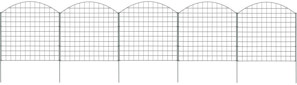 Płotek ogrodowy, łukowy, 77,5 x 78,5 cm, zielony vidaXL Kolor: Array Rozmiar: Array Ten zestaw ogrodzeniowy został zaprojektowany do wszechstronnego zastosowania, może więc posłużyć do zabezpieczenia dzieci przed wpadnięciem do stawów, strumieni czy basenów, jako oznaczenie granicy ogrodu, ogrodzenie, do stworzenia zagrody dla zwierząt i wielu innych celów. Ten zestaw ogrodzeniowy wykonano z malowanego proszkowo drutu stalowego, który jest odporny na rdzę i może zapewnić lata niezawodnego użytkowania na zewnątrz. Jest łatwy w montażu dzięki solidnym słupkom mocującym, które wprowadza się przez boczne przelotki elementów ogrodzenia, a następnie wbija w ziemię. W skład przesyłki wchodzi 5 paneli ogrodzeniowych i 6 słupków mocujących. Kolor: zielony Materiał: stalowy drut malowany proszkowo Wymiary każdego panelu: 775 x (640-785) mm (szer. x wys.) Wymiary słupków wspornikowych: 5,7 x 940 mm (śr. x wys.) Rozmiar nakładek na słupki: Ф 15 mm W skład przesyłki wchodzi 5 paneli z siatki i 6 słupków mocujących