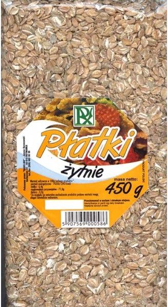 Płatki żytnie Opakowanie: 450g Skład: płatki żytnie 100% Żyto to zboże znane i cenione już od starożytności. Dzięki bogatej zawartości składników odżywczych pozytywnie wpływa na pracę całego organizmu. Doskonale nadaje się jako dodatek do napojów mlecznych, kefirów, do pieczenia ciast. Produkt może zawierać śladowe ilości orzeszków ziemnych, innych orzechów, sezamu, soi. Produkt zawiera gluten. Wartość energetyczna w 100g: 1196kj / 286 kcalTłuszcz 1,7 gW tym kwasy tłuszczowe nasycone 0,2 gWęglowodany 57,7 gW tym cukry 0,1 gBłonnik 13,2 gBiałko 8,8 gSól 0,06 g