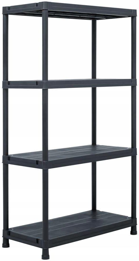 Regały magazynowe, 5 szt., czarne, 60x30x138 cm, plastikowe Regał ten może posłużyć w salonie jako biblioteczka lub etażerka, albo na patio do postawienia kwiatów lub innych przedmiotów. Mebel wykonano z mocnego, trwałego plastiku, dzięki czemu łatwo go wyczyścić wilgotną ściereczką i sprawdzi się znakomicie w wilgotnym środowisku, takim jak kuchnia, łazienka, magazyn lub piwnica. Kompaktowa konstrukcja pozwoli maksymalnie wykorzystać ograniczoną przestrzeń. Dzięki załączonym akcesoriom montaż mebla jest łatwy. W skład dostawy wchodzi 5 regałów. Kolor: czarny Materiał: plastik Wymiary: 60 x 30 x 138 cm (dł. x szer. x wys.) Z 4 półkami Maksymalne obciążenie pojedynczej półki: 25 kg Maksymalne obciążenie całkowite: 100 kg Akcesoria montażowe w zestawie Ze znakiem jakości TÜV-GS OSTRZEŻENIE: aby zapobiec przewróceniu się produktu, musi on zostać przymocowany do ściany za pomocą dołączonego elementu montażowego W skład przesyłki wchodzi 5 regałów