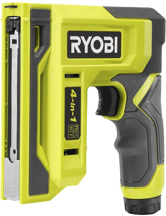 RST4-0 z serii Ryobi to akumulatorowy zszywacz, który pasuje do czterech różnych zszywek i gwoździ. Z końcówką do bezpiecznego zszywania.