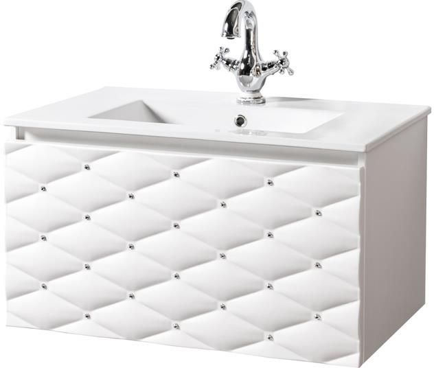 WYMIARY : szeroko : 80 cmwysoko : 44 cmgeboko : 46 cm Front z oryginalnymi krysztakami Swarovskiego. Cena dotyczny szafki bez umywalki Szafka do kompletowania z umywalkami ceramicznymi CORNELIA80 iUMW 80 firmy SANITTI. Kolekcja Sanitti Lira to propozycja do wyrafinowanych wntrz. Prost, nowoczesn bry poczono z unikalnymi, geometrycznymi frontami, ktre mog by ozdobione oryginalnymi krysztaami Swarovskiego. Efekt uzyskany jest poprzez technologi jednolitego odlewu i dlatego bdzie lekki i trway. Meble zostay wykonane z materiaw odpornych na wilgo i wysok temperatur, a wykoczenie o wysokim poysku doskonale wpisuje si w trendy minimalistyczne. W szafkach i szufladach zastosowano system cichego domykania, ktry poprawia komfort uytkowania.To pereka wrd mebli azienkowych, przykuwa uwag i intryguje.