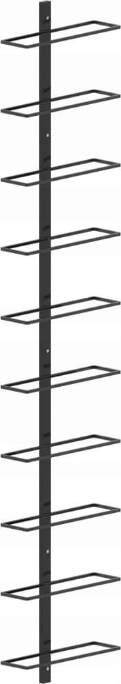 Ścienny uchwyt na 10 butelek wina, czarny, metalowy vidaXL Kolor: Array Rozmiar: Array Ten wieszak na wino o prostym, a zarazem stylowym wyglądzie nada wnętrzu odrobinę nowoczesnej klasy. Ten uchwyt na wino pomieści do 10 butelek. Wykonano go z malowanego proszkowo metalu, dzięki czemu jest niezwykle trwały i łatwy w utrzymaniu. Jest to idealny wybór na prezent dla swoich uwielbiających wino przyjaciół i znajomych. Ponadto, dzięki dołączonym materiałom montażowym, ten stojak na wino można łatwo przymocować do ściany. Jest również prosty w montażu. Prosimy mieć na uwadze, że butelki wina nie są częścią przesyłki. Kolor: czarny Materiał: malowany proszkowo metal Wymiary: 24 x 9 x 120 cm (szer. x gł. x wys.) Mieści do 10 butelek wina (butelki nie są częścią przesyłki) Przesyłka zawiera akcesoria montażowe Wymagany montaż: tak