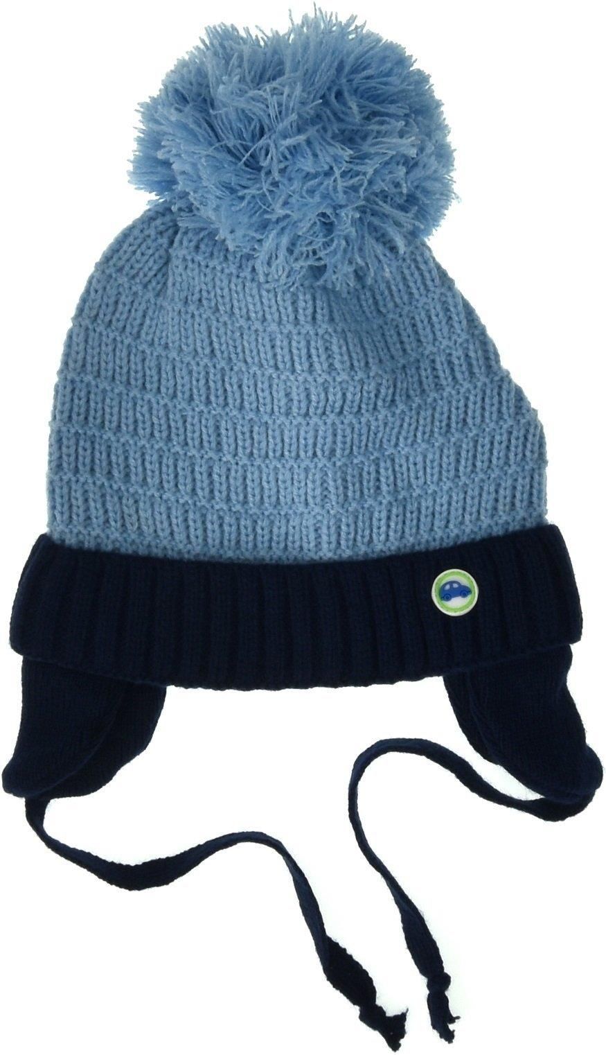 Czapka niemowlęca z troczkami i pomponem. Skład: Wierzch: - 100% akryl Podszewka: - 100% bawełna