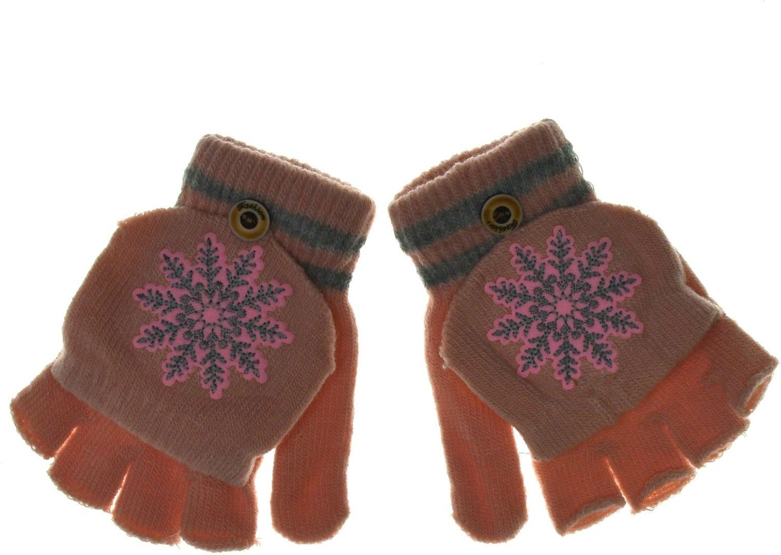 Rękawiczki/mitenki z klapką oraz śnieżynką z przodu. Dziewczęce kolory spodobają się małym księżniczkom. Skład: - 85% akryl - 15% elastan
