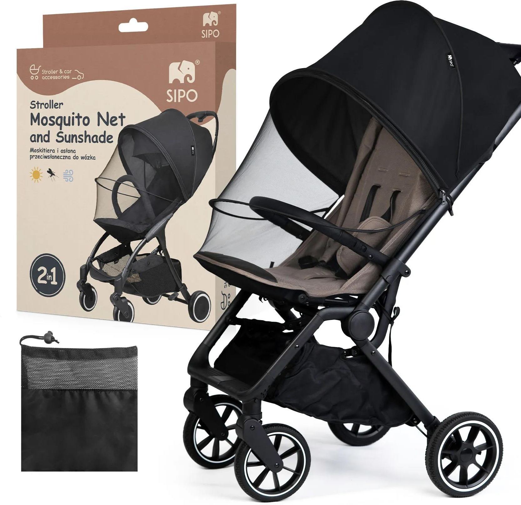 SPECYFIKACJA: Model: SCA-04 Marka: SIPO EAN: 5904717761467 Materiał: poliester Kolor: czarny Wymiary rozłożonej osłony: 95 cm (długość) 45 cm (szerokość) 35 cm (wysokość) Wymiary opakowania: 21 cm x 4 cm x 24,5 cm (+3 cm) Waga netto: około 155 g Rodzaj zamknięcia: podwójny zamek błyskawiczny (dwukierunkowy) Montaż: elastyczne taśmy z możliwością wiązania + gumki zaciskowe Rodzaj siatki: gęsto tkana mikrosiatka (ok. 1 mm) Typ osłony: przeciwsłoneczna i przeciw owadom (2w1) Kompatybilność: większość dostępnych na rynku wózków spacerowych, gondoli, fotelików, nosideł i leżaczków ZAWARTOŚĆ OPAKOWANIA: 1 moskitiera z funkcją przeciwsłoneczną 1 woreczek do przechowywania 1 instrukcja obsługi OPIS PRODUKTU: Moskitiera z funkcją ochrony przeciwsłonecznej marki SIPO to wielozadaniowe akcesorium dziecięce stworzone z myślą o komforcie i bezpieczeństwie najmłodszych użytkowników. Konstrukcja oparta na lekkiej siatce z poliestru oraz materiałowej osłonie blokującej promienie UV, skutecznie zabezpiecza dziecko przed ukąszeniami owadów, nadmiernym światłem oraz podmuchami wiatru. Osłona została wyposażona w dwa niezależne zamki błyskawiczne, umożliwiające szybki dostęp do dziecka bez konieczności demontażu produktu. Jej uniwersalna forma oraz dwa kierunki montażu pozwalają na dopasowanie do zmieniających się warunków pogodowych i pozycji słońca. PRZEZNACZENIE PRODUKTU: Produkt przeznaczony jest do stosowania jako osłona ochronna w wózkach dziecięcych, gondolach, fotelikach samochodowych (poza pojazdem) i nosidłach. Sprawdza się zarówno w codziennym użytkowaniu miejskim, jak i podczas spacerów na łonie natury. Zaprojektowany z myślą o cieplejszych porach roku oraz podróżach, gdzie występuje potrzeba kompleksowej ochrony przed insektami i słońcem. To również doskonałe rozwiązanie na czas drzemki malucha na świeżym powietrzu - dzięki szczelnej siateczce żadne muchy, komary ani inne owady nie zakłócają snu dziecka, co pozwala mu odpoczywać w spokoju i pełnym komforcie. ZALETY PRODUKTU: Funkcjonalność 2w1 - połączenie osłony przeciwsłonecznej i moskitiery Gęsto tkana siatka - zabezpieczenie przed owadami (również drobnymi, jak meszki) Elastyczny system montażowy - szybkie i stabilne mocowanie bez użycia narzędzi Podwójne zamki - ułatwiony dostęp do dziecka bez konieczności całkowitego zdejmowania osłony Możliwość montażu w dwóch kierunkach - lepsze dostosowanie do warunków oświetleniowych Kompaktowość - łatwe składanie, możliwość przechowywania w dołączonym pokrowcu Neutralna kolorystyka - produkt pasuje do większości modeli i stylów wózków Wbudowane pałąki usztywniające - sprawiają, że osłona zawsze utrzymuje idealny kształt - w przeciwieństwie do standardowych, miękkich moskitier do wózków i łóżeczek. SPOSÓB MONTAŻU: W celu prawidłowego użytkowania, należy rozpocząć montaż od górnej części wózka, nakładając osłonę równomiernie na konstrukcję. Następnie dolną część należy naciągnąć i zaczepić za pomocą wszytych gumek zaciskowych oraz sznurków montażowych. Osłonę można założyć w zależności od potrzeb i położenia słońca (w pozycji odwróconej). Zamek błyskawiczny umożliwia łatwe otwarcie osłony w całości lub częściowo. Po użyciu produkt można zwinąć i umieścić w załączonym woreczku transportowym.