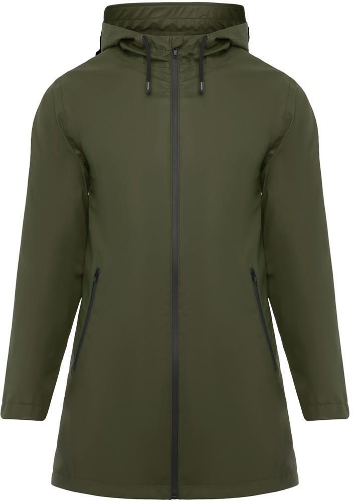 Wodoodporna kurtka przeciwdeszczowa dla kobiet. Kaptur z daszkiem. Zgrzewane zamki i szwy. Kontrastowe detale w kolorze czarnym. Dwie boczne kieszenie zapinane na zamek. Rozcięcie z tyłu. Usuwalna metka. Wodoodporna.