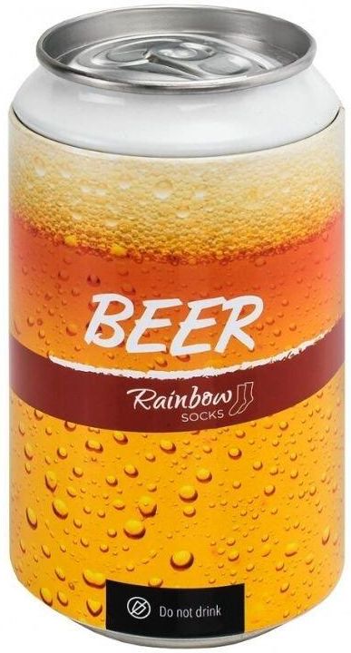 Skarpety Piwosza w puszce Męskie skarpetki imitujące jasne piwo Skarpetki ukryte w puszce wyglądającej jak puszka piwa Rozmiar 41-46 Skład: 80% Bawełna, 17% Poliamid, 3% Elastan Prać w 30 stopniach Oryginalne opakowanie Zabawny gadżet na prezent na urodziny lub na Święta Idealny prezent dla fana chmielowego trunku