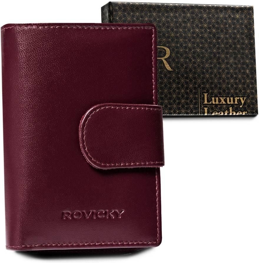 Skórzany portfel damski z systemem RFID Protect — Rovicky Polska marka| Produkt znanej i cenionej marki z wieloletnią tradycją, której zaufały tysiące Klientów! Jakość i precyzja wykonania | Uszyty z wysokogatunkowej skóry naturalnej cechującej się ponadprzeciętną trwałością. Wybierając portfel z tego materiału, masz pewność, że kupujesz go na lata. Pionowy portfel z zapięciem | Portfel w ponadczasowym stylu i pięknym kolorze! Postaw na dodatek, z którym będziesz czuła się modnie i komfortowo. Poręczny portfel do każdej torebki | Portfel posiada dużo praktycznych przegródek i kieszonek, a przy tym jest średnich rozmiarów, dzięki czemu zmieścisz go do kieszeni jak i do torebki. Wyposażony w system RFID | Technologia ta zabezpiecza kartę w portfelu przed kradzieżą środków z konta. Idealny prezent dla Kobiety | Portfel zapakowany w firmowe pudełko. Oszczędzisz czas na szukaniu pudełka, jeśli chcesz podarować ten portfel w prezencie! Sekcja na dokumenty, bardzo rozbudowana Jeżeli posiadasz niezliczoną ilość kart i dokumentów, to idealnie trafiłaś! Portfel jest mega rozbudowany, ma wiele przegródek na karty i dokumenty. W wyposażeniu portfela: 9 przegródek dedykowanych na karty, wizytówki lub dokumenty (1 z tych przegródek jest w formie okienka i możesz przechowywać w niej zdjęcia); 4 kieszonki na dokumenty w większym formacie; Przegródki na karty i dokumenty są zabezpieczone odporną na otarcia podszewką. Pozwala to uniknąć uszkodzeń na skórze, podczas wkładania i wyjmowania kart niezliczoną ilość razy. Sekcja na pieniądze Portfel jest bardzo pojemny, mimo nie tak dużych rozmiarów. W kieszeniach na banknoty i monety zmieścisz satysfakcjonującą ilość gotówki. Kieszenie te, wyściełane są odporną na otarcia podszewką. bilon schowasz do zewnętrznej, zapinanej zamkiem 1 kieszeni, która jest w zasadzie osobną sekcją. To wygodne rozwiązanie, jeśli w danej sytuacji potrzebujesz tylko drobnych. Kieszeń jest podwójna. banknoty schowasz do 1 otwartej, szerokiej przegródki;