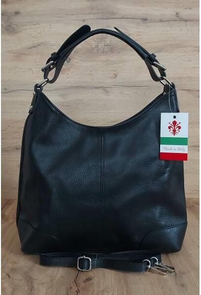 Skórzany Włoski worek ,torba na ramię Vera Pelle miękka ,pojemna Czarna VORX12N Gdynia