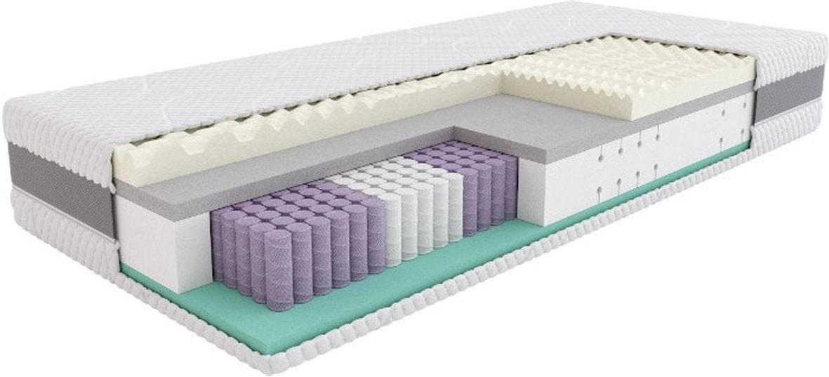 Sleepmed Hybrid Supreme 90X200 Hybrid Supreme to wysoki, hybrydowy materac łączący atuty wkładu sprężynowego i piankowego. Jego zaletą jest możliwość konfigurowania wkładu według aktualnych potrzeb i preferencji użytkownika. Każda z nich oferuje odmienny poziom twardości i komfortu. Serce materaca stanowi wkład sprężynowy obłożony obustronnie piankami wysokoelastycznymi. Zielona miękka, komfortowa oraz szara, nieco twardsza, zapewniającą solidniejsze podparcie. Dzięki dużemu zagęszczeniu sprężyn uzyskujemy niezliczoną ilość punktów podparcia. Każda z nich schowana jest w osobną kieszonkę, dzięki temu pracują one niezależnie. Drgania, ruchy partnera nie są zatem przenoszone, ale zatrzymują się w obrębie źródła ruchu. Dla zwiększenia komfortu, na górze materaca Hybrid Supreme umieszczona została wysoka warstwa pianki z pamięcią kształtu VitRest. Idealnie wypełnia ona naturalne krzywizny kręgosłupa, powodując rozluźnienie poszczególnych partii ciała. Dopełnieniem jest ekskluzywny pokrowiec Merced z wentylującą taśmą 3D wszytą po bokach. Specjalny design i perforacje gwarantują odczuwalny efekt masażu. Sprawia to, że wypoczynek staje się jeszcze bardziej efektywny i przyjemny. BUDOWA RDZENIA MATERACA SLEEPMED HYBRID SUPREME: pianka termoelastyczna VitaRest o wysokości ok. 6 cm, pianka wysokoelastyczna Hard o wysokości ok. 3 cm, 7-strefowy wkład ze sprężyn kieszeniowych o wysokości ok. 13 cm, pianka wysokoelastyczna Soft o wysokości ok. 3 cm, pianka FlexiFoam profilowana zgodnie z technologią Airforce - opaska dla sprężyn kieszeniowych. NAJWAŻNIEJSZE CECHY: Wysokość całkowita materac SleepMed Hybrid Supreme: 27 cm. Polecany dla par, par o dużej różnicy wagowej, osób z bólem kręgosłupa oraz aktywnych. Wyposażony w komfortowy pokrowiec Merced z możliwością prania w pralce (temperatura maksymalna to 60 stopni Celsjusza). Dodatkowo zastosowano siatkę 3D dzięki czemu materac oddycha. Materac posiada status wyrobu medycznego oraz aż 15 lat gwarancji. Sposób pakowania: "na płasko". SKALA TWARDOŚCI Materac SleepMed Hybrid SUPREME został zbudowany na bazie sprężyn kieszeniowych oraz 3 rodzai pianek . Jedną z nich, piankę z pamięcią kształtu o nazwie VitaRest można dowolnie układać: na górze lub na dole. Środkową część wkładu materaca można obracać. Dzięki temu kupując jeden materac, mamy aż 4 możliwości konfiguracyjne. Dodatkowo, kupując matę kokosową możemy tworzyć kolejne kombinacje wkładu materaca. Do każdego modelu materaca SleepMed można zastosować maksymalnie 3 wkłady kokosowe.