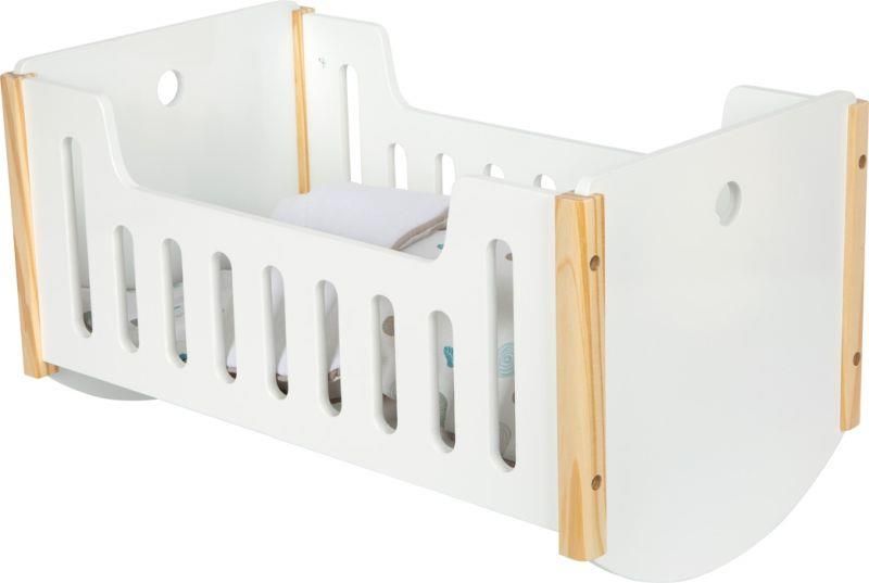 Utulenie ulubionej lalki do snu jest ponadczasową zabawą, która uczy dzieci empatii. Drewniana kołyska dla lalek Little Button Small Foot to wybór nowoczesnego, bardzo stylowego designu zainspirowanego stylem skandynawskim. Uniwersalne posłanie będzie odpowiednie zarówno dla mniejszych, jak i większych laleczek czy pluszowych przyjaciół mierzących nawet do 46 cm długości! Kołyska dla lalek Little Button Small Foot cechuje się ergonomicznością oraz bezpieczeństwem użytkowania. Zaokrąglone krawędzie drewnianego mebla do zabawy lalkami realnie redukują niebezpieczeństwo urazów. W komplecie z kołyską dla lalek Small Foot przewidziano uroczą pościel ze sporym kocem oraz poduszką w kolorowe groszki. Neutralna kolorystyka kołdry będzie idealna zarówno dla dziewczynek, jak i chłopców. Najważniejsze zalety, którymi cechuje się Biała drewniana kołyska dla lalek Little Button Small Foot 12260 w zestawie znajdują się kołyska dla lalek z piękną pościelą, minimalistyczny styl nawiązujący do skandynawskiej tradycji, duża ilość widocznego drewna łączy się z uniwersalną bielą, zaokrąglone krawędzie mebla dla lalek, dla lalek i pluszaków o długości do 46 cm, w pakiecie materiałowa pościel w kolorowe groszki, znakomity prezent dla dziewczynki i chłopca - wszystkich małych miłośników zabaw w dom, wsparcie rozwoju empatii oraz umiejętności społecznych. Wymiary drewnianego łóżeczka na biegunach Little Button Small Foot: ok. 49 x 28 x 27 cm