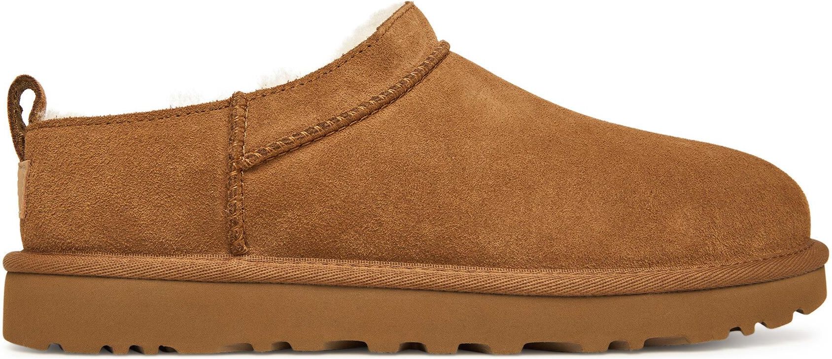 Buty damskie UGG Classic Micro 1173891-CHE brązowe zamszowe wełniane 36 Buty UGG Classic Micro 1173891-CHE zapewniają ciepło, wygodę i ochronę przed wilgocią. Buty damskie UGG Classic Micro 1173891-CHE to niska wersja kultowego modelu Classic Boot. Wykonane z miękkiej skóry zamszowej, wyściełanej naturalną wełną, zapewniają ciepło i wygodę o każdej porze roku. Lekka podeszwa SugarSole™ z trzciny cukrowej gwarantuje amortyzację i elastyczność, a technologia Water Resistant chroni przed wilgocią. Pętelka z tyłu ułatwia zakładanie, a uniwersalny brązowy kolor Chestnut nadaje im ponadczasowy charakter. Idealne do domu lub na szybkie wyjścia na zewnątrz. Szczegóły: Marka: UGG Model: Classic Micro Płeć: damskie Kod producenta: 1173891-CHE Rozmiar: Kolor: brązowy Stan: nowy Dodatkowe informacje: Kolor podeszwy: brązowy Materiał zewnętrzny: skóra naturalna zamszowa Materiał wkładki: inny Materiał podeszwy: trzcina cukrowa Typ opakowania: oryginalny karton Nr. produktu: (198605275241) Uwaga: podana długość wkładki w cm jest wartością orientacyjną według danych producenta. Gwarancja oryginalności i jakości Wszystkie produkty oferowane w naszym sklepie są w 100% oryginalne. Pochodzą bezpośrednio od producentów, oficjalnych dystrybutorów lub sprawdzonych dostawców. Każdy artykuł wysyłany jest w oryginalnym opakowaniu, wraz z kompletem dodatków i metek, zgodnie z wytycznymi producenta. Kupując u nas, masz pewność autentyczności, najwyższej jakości oraz pełnej satysfakcji z zakupu.
