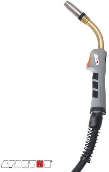 Uchwyt MIG MAG SPARTUS MASTER 240, chłodzony gazem z przyłączem typu Euro. Ergonomiczna rękojeść, przeguby kulowe, obciążalność prądowa w cyklu pracy 60%, 250A, długość: 5 m. UCHWYT SPAWALNICZY MIG/MAG SPARTUS MASTER 24 (MB24) Uchwyt spawalniczy SPARTUS 240 (MB 24) to wysokiej jakości niezawodny i trwały uchwyt chłodzony gazem z przyłączem typu Euro. Przeznaczony jest do spawania ręcznego metodą MIG/MAG. Może być stosowany w większości urządzeń MIG/MAG wyposażonych w przyłącze Euro. Uchwyt SPARTUS serii MASTER charakteryzują się ergonomiczną rękojeścią i wtykiem euro, które zakończone są przegubami kulowymi oraz sprężynami stabilizującymi zapobiegającymi załamywaniu się przewodów, wysokim cyklem pracy - czasem jaki uchwyt może przepracować, nieprzerwanie, pod zadanym obciążeniem. Cykl pracy wyznacza się w procentach dla 10 minutowego przedziału czasowego, wysoką jakością wykonania. PARAMETRY długość: 5 m obciążalność prądowa w cyklu pracy 60%: 250 A - CO2, 220 A - mieszanka zakres średnic drutu elektrodowego: 0,8 – 1,2 mm rodzaj chłodzenia: gazemosłonowym seria: MASTER producent: SPARTUS