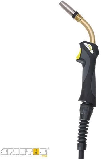 UCHWYT SPAWALNICZY MIG MAG SPARTUS PRO 240 4m Wysokiej jakości niezawodny i trwały uchwyt firmy SPARTUS PRO 240, chłodzony gazem z przyłączem typu Euro. Ergonomiczna rękojeść, przeguby kulowe, obciążalność prądowa w cyklu pracy 80%: 250 A, długość: 4 m. Producent: Spartus Typ uchwytu: 24 Długość uchwytu: 4 m Obciążalność prądowa: 200 - 300 A UCHWYT SPAWALNICZY MIG/MAG SPARTUS PRO 240 (MB24) Wysokiej jakości uchwyt spawalniczy SPARTUS 240 PRO (MB 24) to niezawodny i trwały uchwyt chłodzony gazem z przyłączem typu Euro stworzony dla wymagających klientów. Przeznaczony jest do spawania ręcznego metodą MIG/MAG. Może być stosowany w większości urządzeń MIG/MAG wyposażonych w przyłącze Euro. Uchwyt SPARTUS serii PRO charakteryzują się wzmocnioną ergonomiczną rękojeścią wykonaną z najwyższej jakości komponentów, wysokim cyklem pracy - czasem jaki uchwyt może przepracować, nieprzerwanie, pod zadanym obciążeniem. Cykl pracy wyznacza się w procentach dla 10 minutowego przedziału czasowego, specjalnym przegubem kulowym z kompozytową sprężyną, przewodem prądowym o zwiększonej obciążalności PARAMETRY długość: 4 m obciążalność prądowa w cyklu pracy 80%: 250 A - CO2, 220 A - mieszanka zakres średnic drutu elektrodowego: 0,8 – 1,2 mm rodzaj chłodzenia: gazemosłonowym seria: PRO producent: SPARTUS