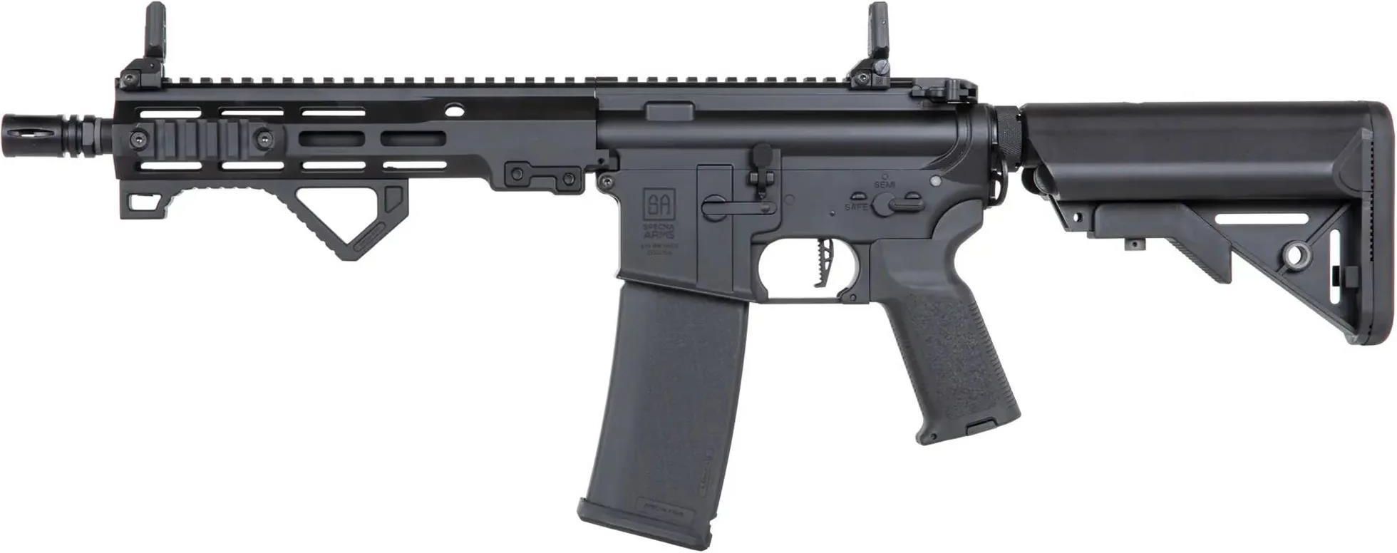 Elektryczna replika karabinka szturmowego SA-P23 z serii PRIME, wyposażona w łoże wzorowane na wersji Daniel Defense RIS III z systemem M-LOK, silnik bezszczotkowy Specna Arms Dark Matter High Speed 27k oraz moduł sterowania Gate Aster II Bluetooth umożliwiający dostosowanie ustawień replik do potrzeb użytkownika.