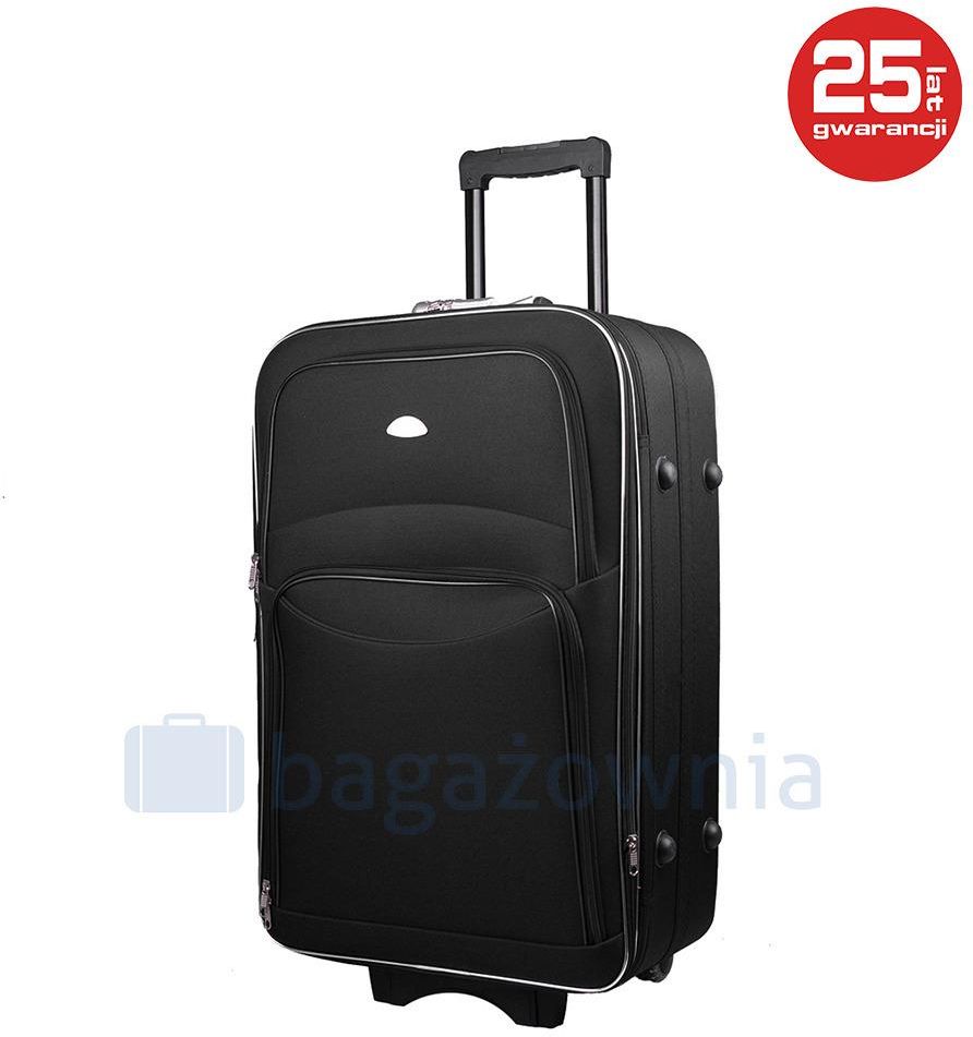 Średnia walizka PELLUCCI RGL 773 M Czarna Kolory: Czarny Rodzaj walizki: miękka Materiał: Poliester Wymiary wys/szer/głęb (cm): 68 x 44 x 27 / 30 Pojemność (l): 68 / 75 Kółka: 5 kółek Typ zabezpieczenia: zamek szyfrowy Waga (kg): 3,3 Budowa: walizka miękka wykonana w konstrukcji typu B materiał poliester (odporny na przecieranie, trudno chłonący zabrudzenia, 100% wodoodporny, niefarbujący) wytrzymałe i ciche koła poszerzenie trwałe i mocne szwy narożniki zabezpieczone przed przetarciami specjalną otuliną stelaż aluminiowy z regulowaną wysokością (bardzo lekki i bardzo odporny na uderzenia zewnętrzne oraz zgniatanie) stelaż zamocowany zewnętrznie, co nie ogranicza pojemności walizki lekki, specjalny element chroniący dolny narożnik walizki przed przetarciami zapinana na wodoodporne, niezawodne suwaki rączki wszyte bardzo głęboko, co zabezpiecza przed wyrwaniem posiada stópki boczne do postawienia walizki na boku wyposażona w dolny uchwyt ułatwiający włożenie walizki do bagażnika samochodu lub do luku bagażowego dodatkowo wyposażona w zamek szyfrowy hipoalergiczna podszewka z możliwością rozpięcia szelki spinające (gdy przewozimy mniejszą ilość ubrań, aby nie uległy pognieceniu) kieszeń wewnętrzna na bieliznę przegroda koszulowa