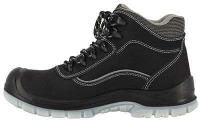 Buty robocze marki Stalco w rozmiarze 45. Podwyższona odporność sprawia, że obuwie nie przemaka w wilgotnym środowisku. Wykonane z naturalnej skóry nubukowej, z kompozytowym noskiem, kevlarową wkładką i antypoślizgową podeszwą PU/TPU. Idealne do pracy w trudnych warunkach. "Helios High" naturalna skóra nubukowa miękka wyściółka zalewany nosek zapobiega ścieraniu nosek wzmocniony kompozytem właściwości: antystatyczne, antypoślizgowe, olejoodporne system Anit -Shock podeszwa nie rysująca podłogi mocne szlufki elementy odblask.