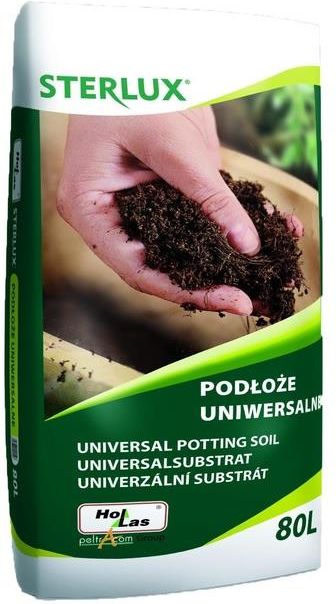 Ziemia podłoże uniwersalne 80l Sterlux Hollas Wyrób ten jest gotowym substratem do uprawy warzyw oraz większości gatunków roślin ozdobnych w doniczkach, na działkach i w ogrodach. Powstał na bazie torfu wysokiego, wzbogaconego o wieloskładnikowy nawóz z dodatkiem mikroelementów. Odczyn substratu utrzymuje się w przedziale pH 5,5 – 6,5.