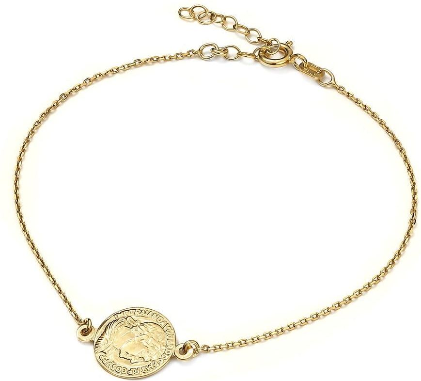 Wyjątkowa, pozłacana bransoletka z monetą będzie oryginalnym uzupełnieniem stylizacji zarówno eleganckiej jak i casualowej. Subtelną bransoletkę zdobi bardzo efektowna moneta. Pozłacana bransoletka z dodatkiem monety to świetny pomysł na prezent dla bliskiej osoby. Bransoletka została wykonana z ogromną precyzją, przez co jest produktem najwyższej jakości. Do produkcji użyto srebra próby 925, które następnie zostało pokryte złotem w delikatnym odcieniu. Prezentowana biżuteria jest idealna dla kobiet, które lubią się wyróżnić w eleganckim stylu. Poznaj nasze pozostałe produkty z tej kolekcji i stwórz idealny zestaw! Zabłyśnij z biżuterią Susetti!