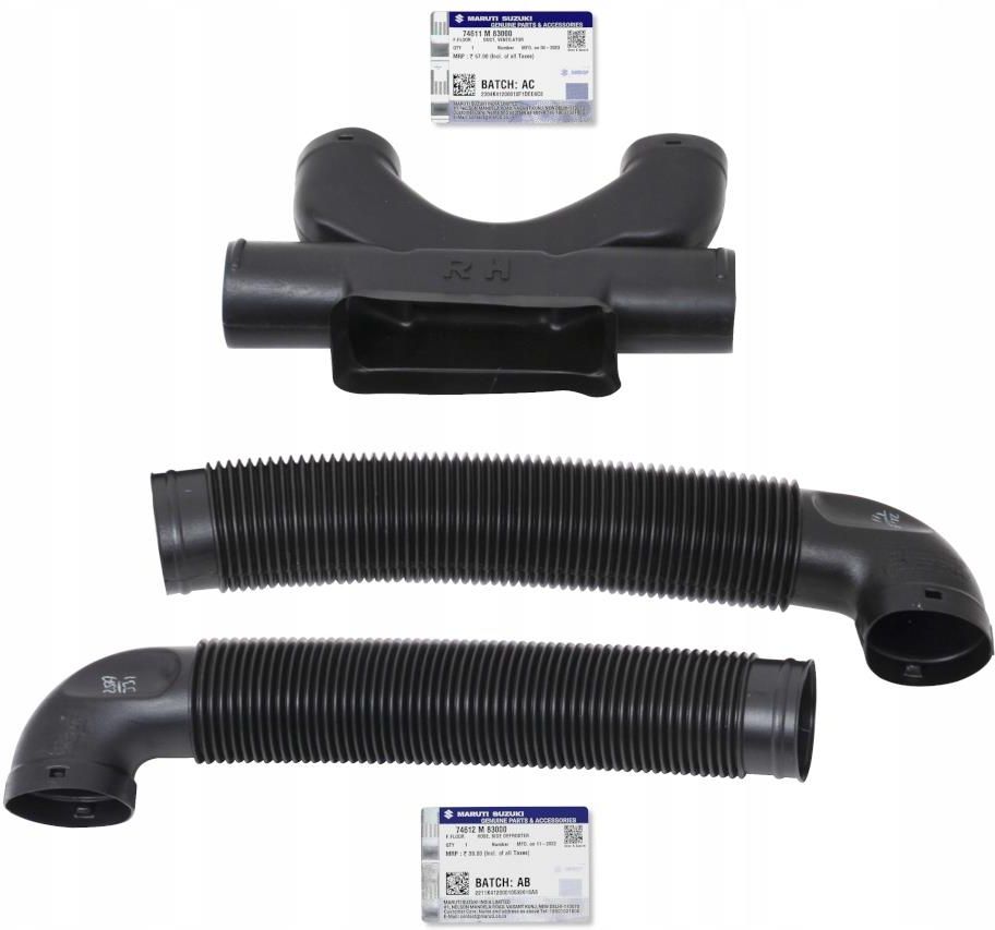 Zestaw przewodów nawiewu. Uwaga!! Środkowy element zestawu pasuje tylko do aut w wersji RHD (anglików). Boczne elementy pasują do aut w wersji RHD oraz LHD. Producent - oryginał Suzuki Maruti Numery oryginałów - 74611M83000 74611-83000 7461183000 74612M83000 74612-83000 7461283000 Indeks - …