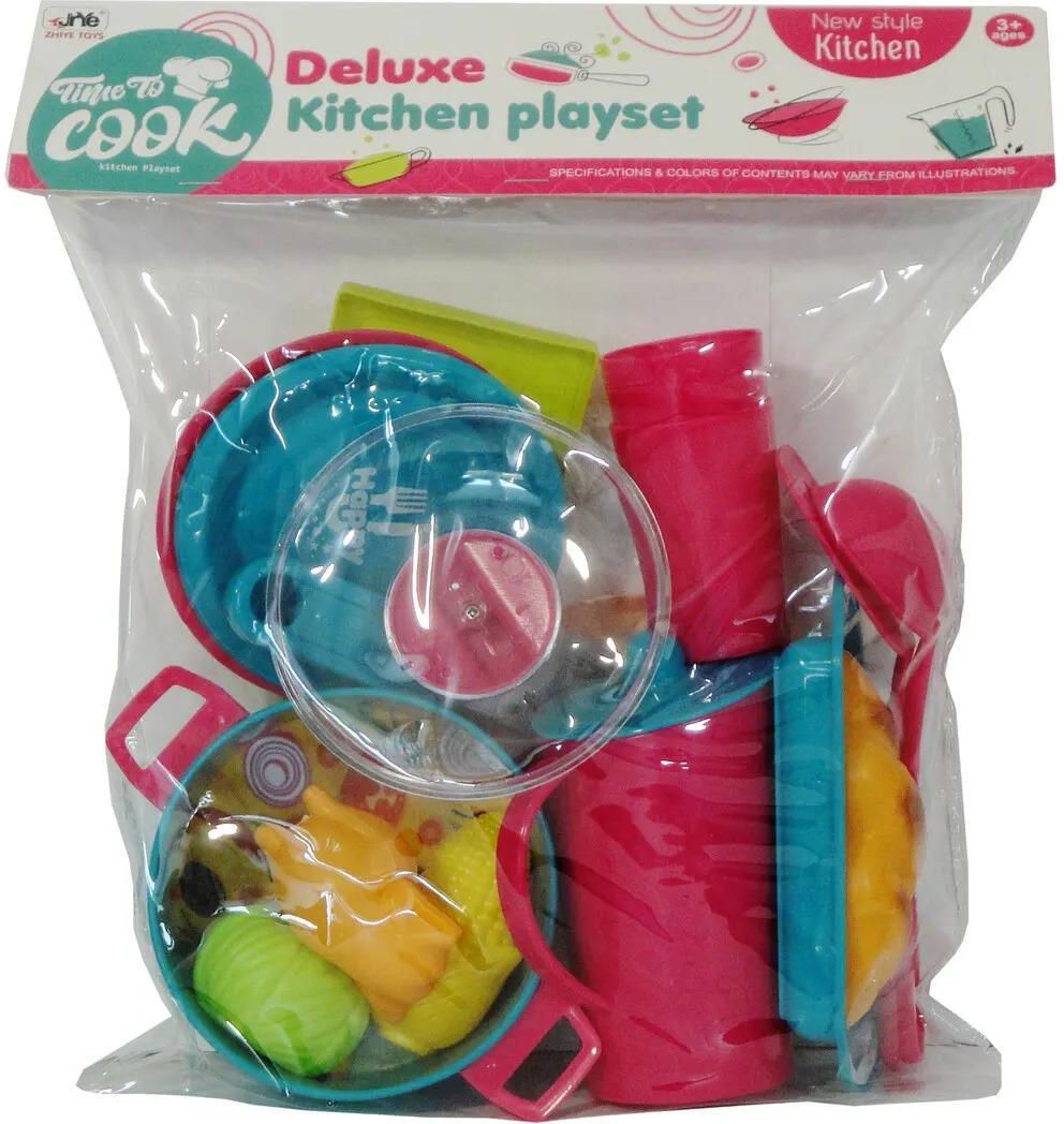 Zestaw kuchenny zawierający m.in.: garnki, dzbanek, talerzyki, pokrywki, produkty spożywcze i inne akcesoria. Produkt dla dzieci od 3 lat. Całość zapakowana w przezroczysty worek. Podane wymiary są wymiarami produktu w opakowaniu. Wiek: 3+Producent/osoba odpowiedzialna za bezpieczeństwo produktuKUKURYKU Julia PogorzelskaEKONOMICZNA 442-271 CZĘSTOCHOWAoffice@kukuryku.co34 340 11 50