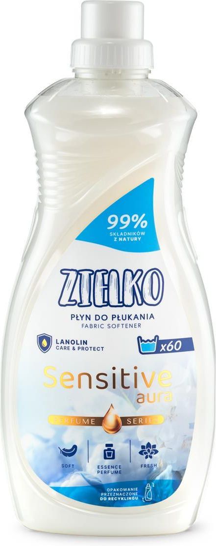 ZIELKO Płyn do płukania SENSITIVE AURA Ekologiczny płyn do płukania tkanin Dbamy o planetę, dlatego nasz płyn jest ekologiczny i bezpieczny dla przydomowych oczyszczalni ścieków Nie zawieradrażniących detergentów Jest wydajny, co zapewnia ekonomiczne pranie Jego formuła zawiera 99% składników …